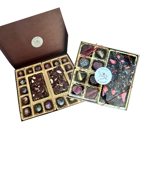 Gifts to send to clients, family and friends - a box of elegant mendiants, or a bark and bite combo are sure to please. Mix and match your favorites!